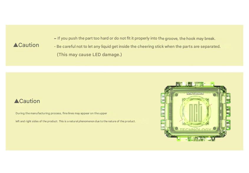 - Be careful not to let any liquid get inside the cheering stick when the part is separated. (This may cause the LED to break.)
