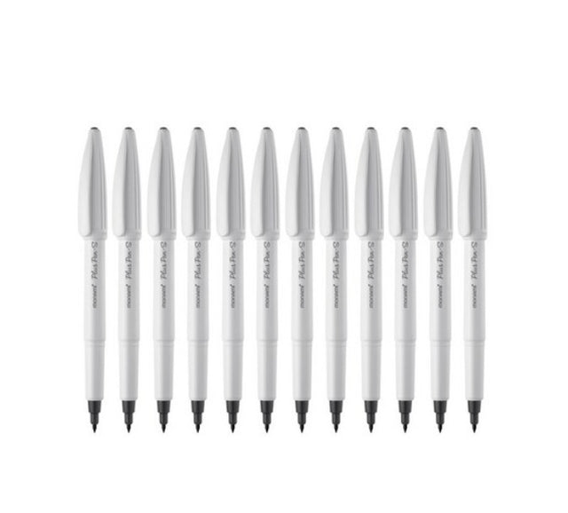 Monami Plus Pen S Water-based Felt Tip, Fine Liner Pen - White Body - Black Ink - Pack of 12 Pen | Korean stationery brand | High-quality stationery
